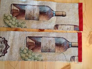 Unisco i due pezzi grandi (18 x 37) con una cucitura inglese sul lato di 18 cm, per fare la base del portabottiglie.