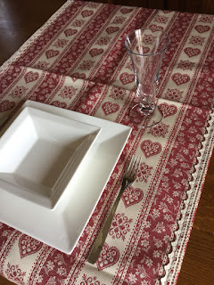 Le tovagliette all'americana hanno una misura di circa 35 x 50 cm e sono in tessuto artistico di Brunico sui toni dell'azzurro