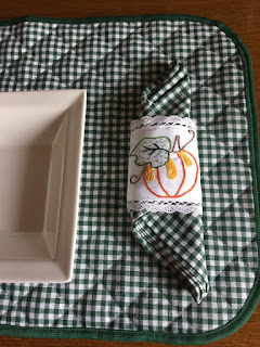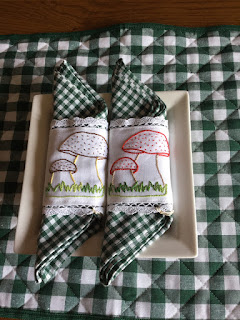 Le tovagliette sono tutte corredate di tovaglioli e portatovaglioli, anche ricamati con motivi di zucche o funghetti.